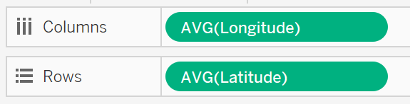 - Drag the Longitude and Latitude to Columns and Rows respectively.