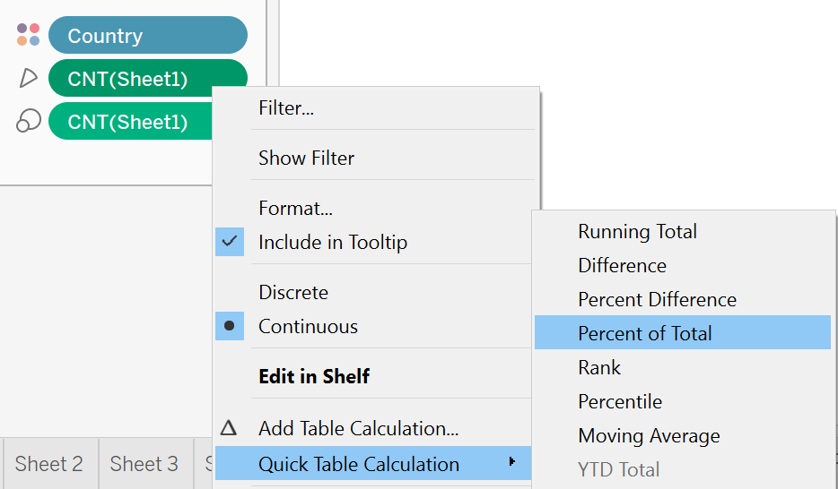 - Drag Country and the computed CNT(Sheet1) to label.