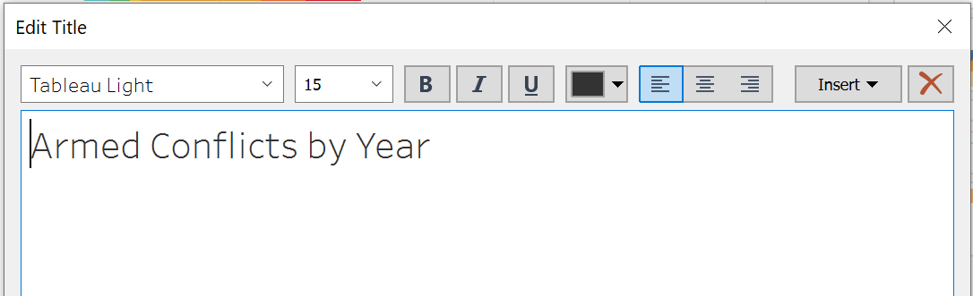 - Back to the Conflict by Year graph and click on the Tooltip and insert the Pie chart generated.
