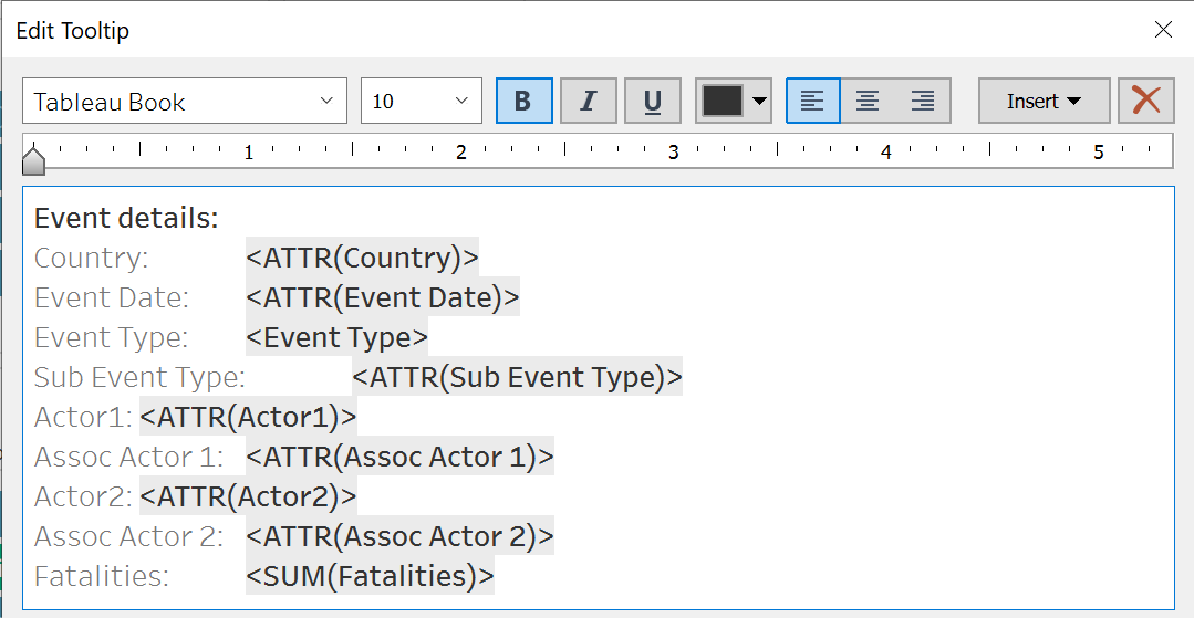 - Drag the following to Tooltip.