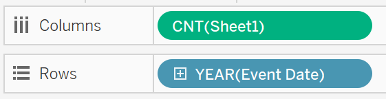 - Drag Sheet1 and Year to Columns and Rows respectively.